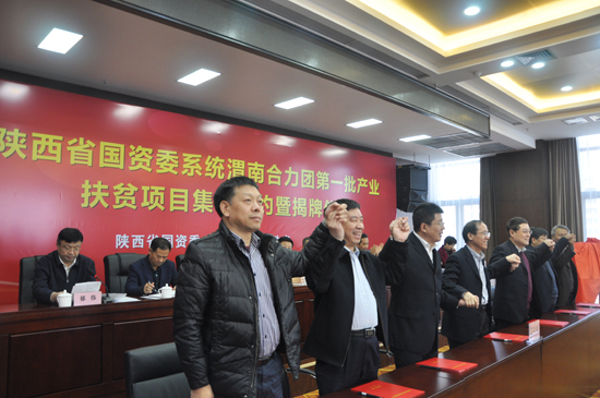 11月23日上午,渭南合力團第一批產業扶貧項目集中簽約暨渭南合力產業扶貧有限公司揭牌儀式在渭南市財富中心舉行。省政府副省長馮新柱,省國資委主任胡保存,省政府研究室副主任孫守平,省扶貧辦副主任彭安季,省國資委黨委副書記郁偉及省政府有關部門領導;渭南市市委副書記、市長李明遠,渭南市副市長王心及渭南市委、市政府有關部門領導;渭南合力團各成員單位、相關企業、新聞媒體共計100多人參加了簽約暨揭牌儀式。集團公司副總經理郭岐鎖及相關工作人員參加。