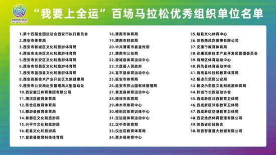 陜西西風(fēng)烈賽事有限公司作為百場(chǎng)馬拉松賽事的籌辦單位之一,榮獲了“我要上全運(yùn)”百場(chǎng)馬拉松優(yōu)秀組織單位榮譽(yù)表彰。