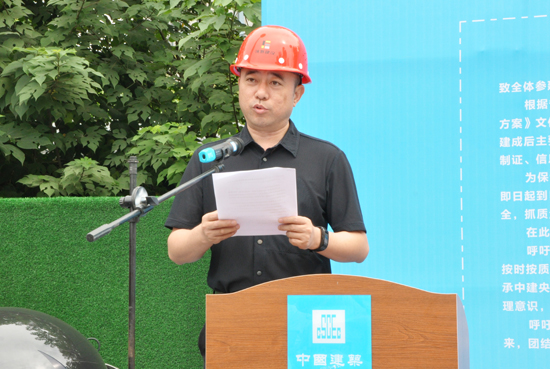 誓師大會上,中國建筑西北區域總部(中建絲路)總經理孔衛湘作動員,中建八局西北董事長段輝樂、陜旅建設公司常務副總、體育之窗項目總指揮王鵬以及工人代表作了表態發言。