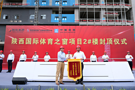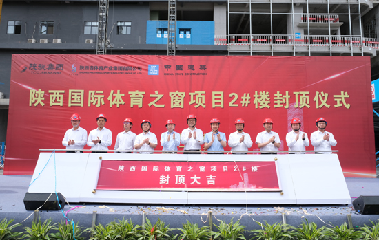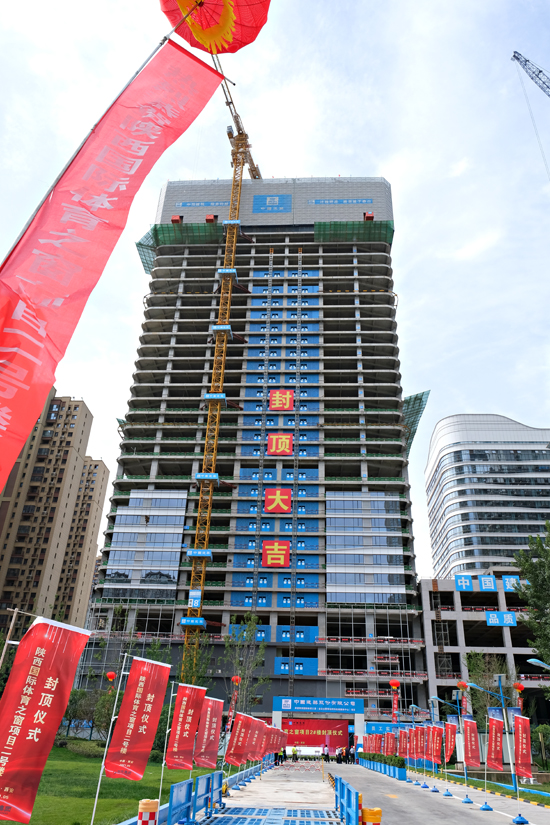 陜西國際體育之窗 (十四運(yùn)會賽事指揮和新聞媒體中心)項(xiàng)目2#樓順利封頂