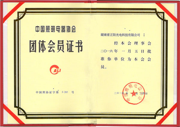 中國(guó)照明電器協(xié)會(huì)團(tuán)體會(huì)員證書(shū)