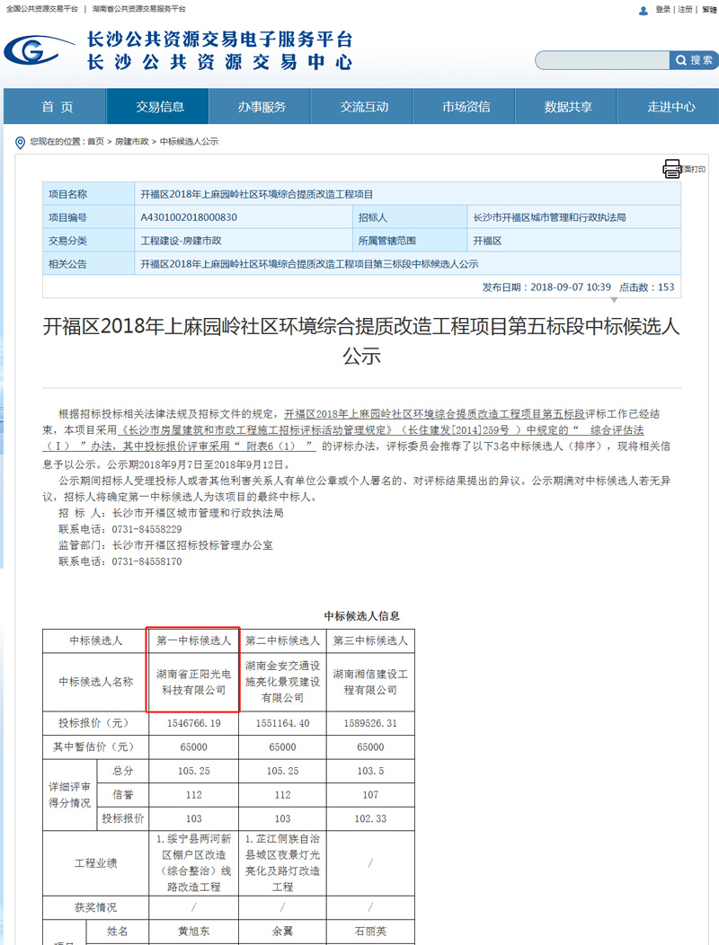 2018年9月7日,湖南省正陽光電科技有限公司成功中標開福區(qū)2018年上麻園嶺社區(qū)環(huán)境綜合提質(zhì)改造工程項目第五標段。熱烈祝賀湖南省正陽光電科技有限公司成功中標開福區(qū)20...