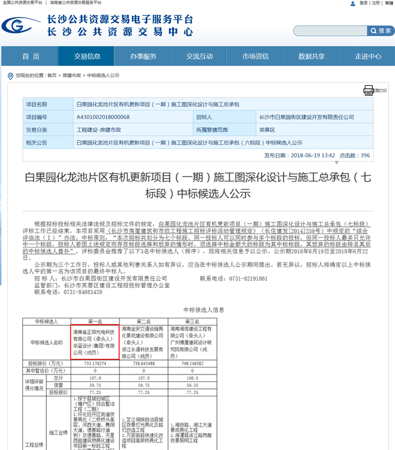 2018年6月19日,湖南省正陽光電科技有限公司成功中標(biāo)白果園化龍池片區(qū)有機(jī)更新項(xiàng)目(一期)施工圖深化設(shè)計(jì)與施工總承包(七標(biāo)段)。熱烈祝賀湖南省正陽光電科技有限公司...