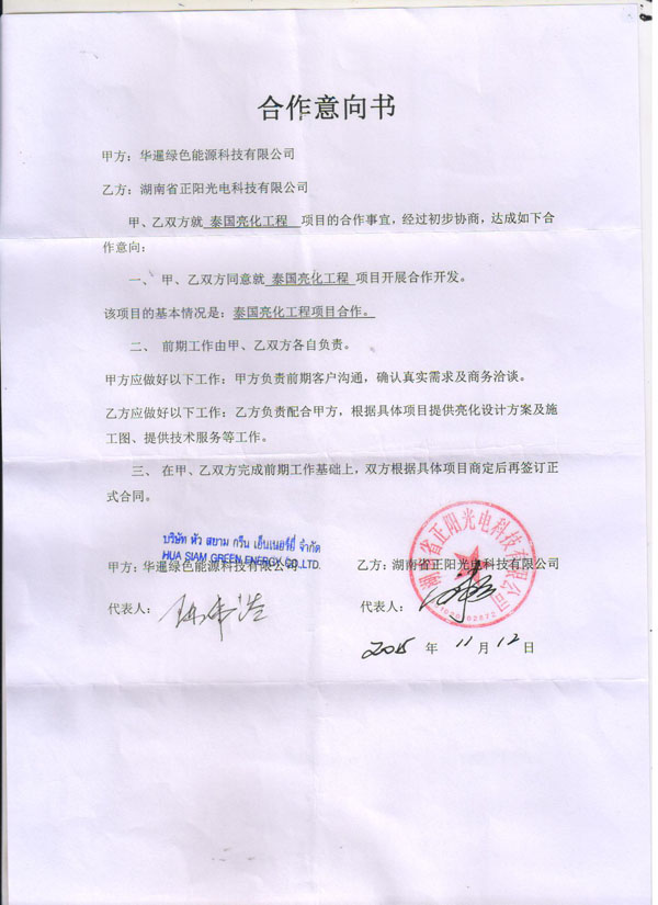 2015年11月12日,我公司成功拓開(kāi)泰國(guó)市場(chǎng),與客戶(hù)簽訂《合作意向書(shū)》!