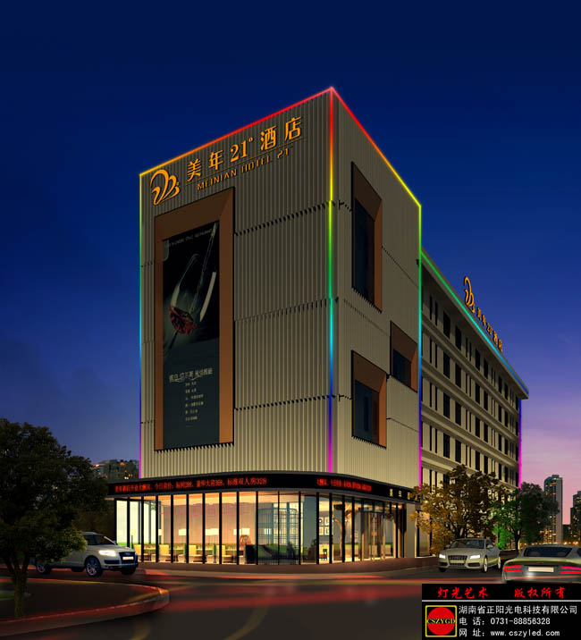 熱烈祝賀湖南省正陽光電科技有限公司成功簽約美年21酒店亮化工程!