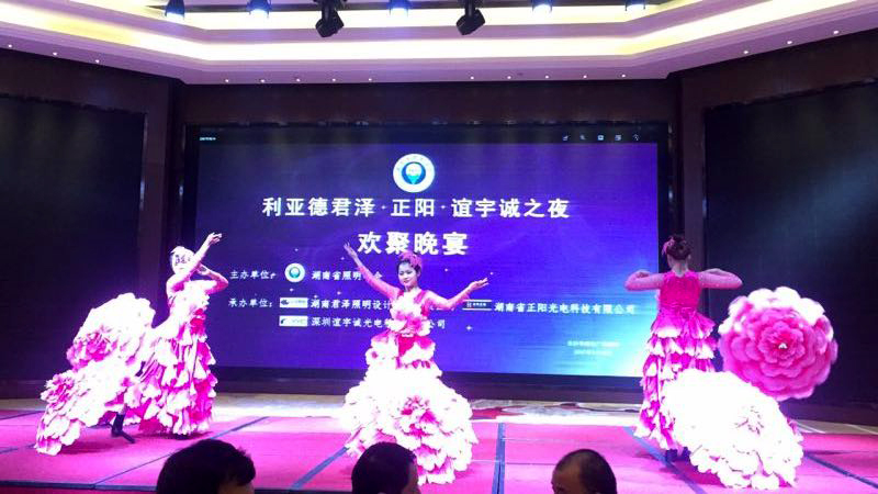 晚上18:30至21:30,承辦單位湖南省正陽光電科技有限公司等三家單位聯(lián)合舉辦了隆重的“利亞德?君澤、正陽、誼宇誠之夜”歡聚晚宴。并各承辦單位代表上臺致辭。