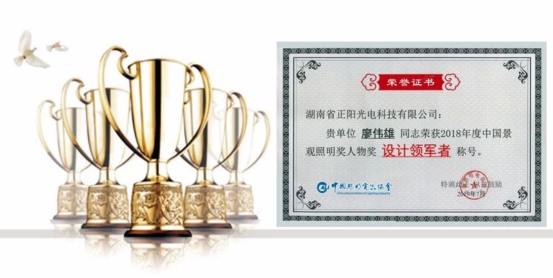 在中國景觀照明獎(jiǎng)?lì)C獎(jiǎng)典禮環(huán)節(jié),對(duì)2018年度“中國景觀照明獎(jiǎng)”獲獎(jiǎng)個(gè)人及企業(yè)進(jìn)行表彰頒獎(jiǎng),湖南省正陽光電科技有限公司董事長廖偉雄獲得了2018年度中國景觀照明獎(jiǎng)人物獎(jiǎng)“設(shè)計(jì)領(lǐng)軍者”稱號(hào)。此次獎(jiǎng)項(xiàng)評(píng)選旨在倡導(dǎo)景觀照明產(chǎn)業(yè)鏈重品質(zhì)、重信譽(yù)、重環(huán)保、重科技創(chuàng)新的理念,引導(dǎo)和促進(jìn)景觀照明產(chǎn)業(yè)健康發(fā)展。